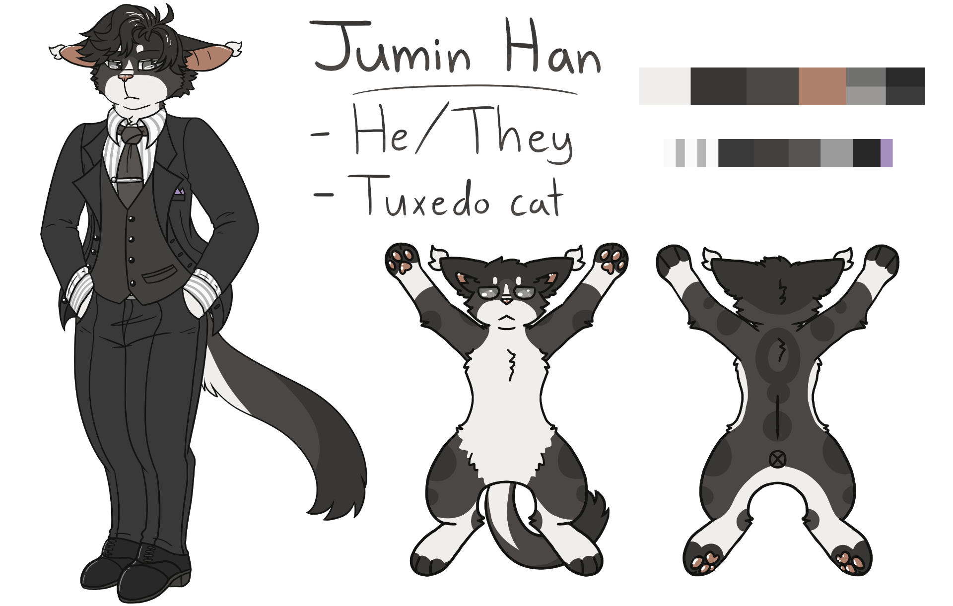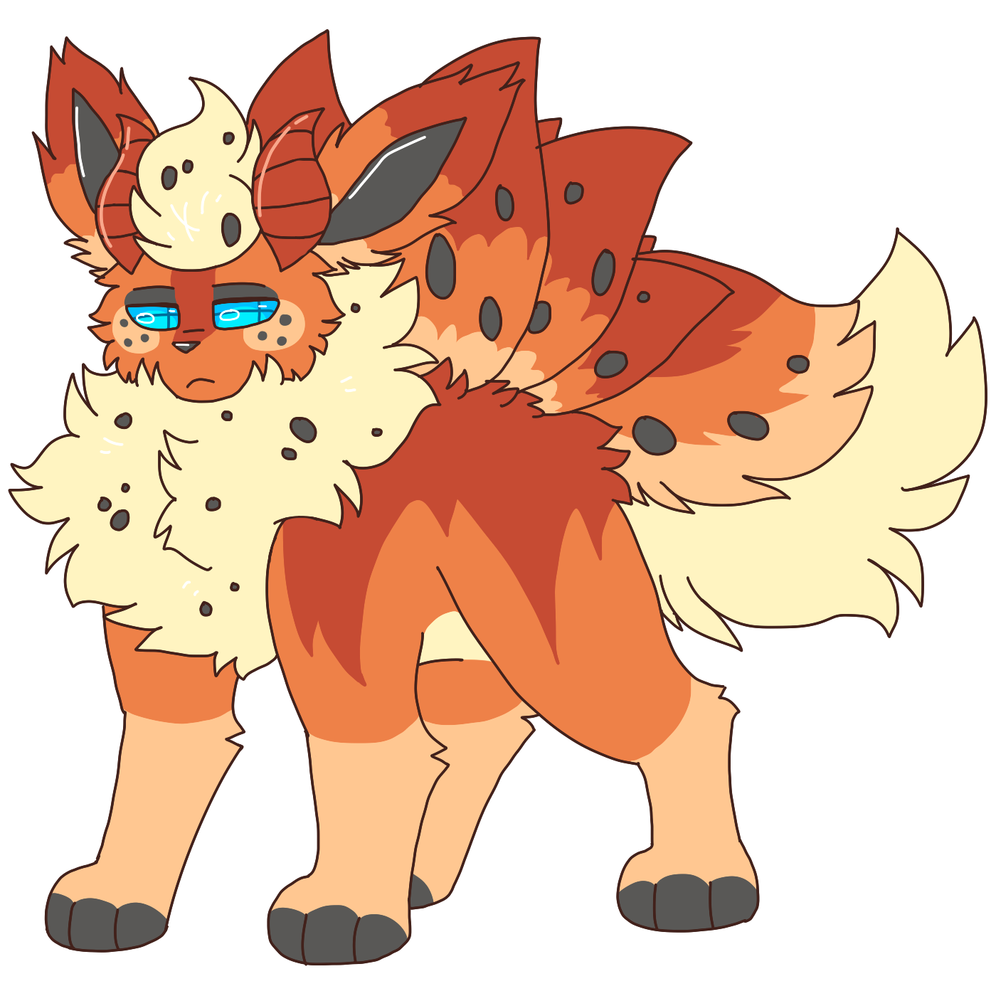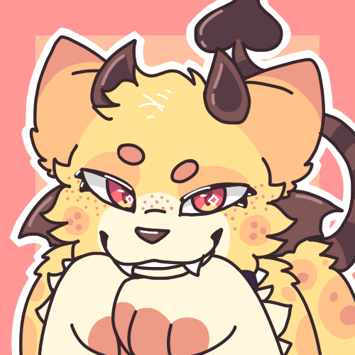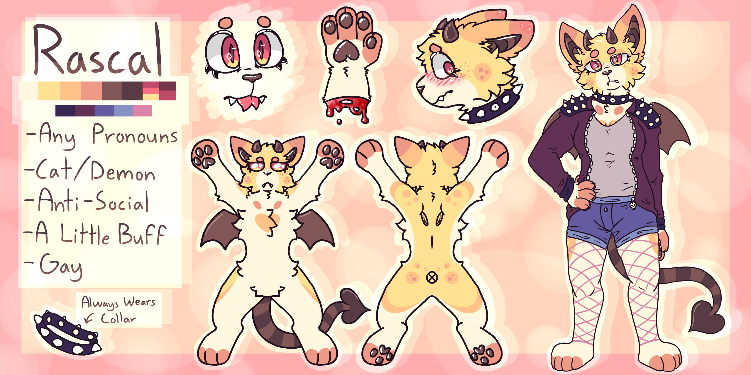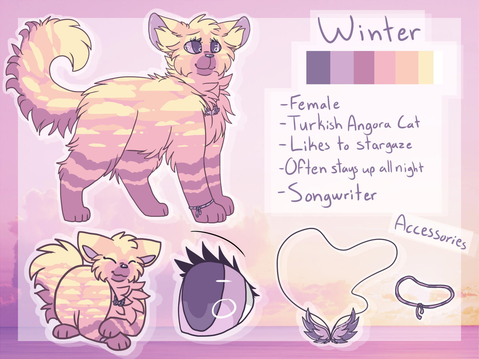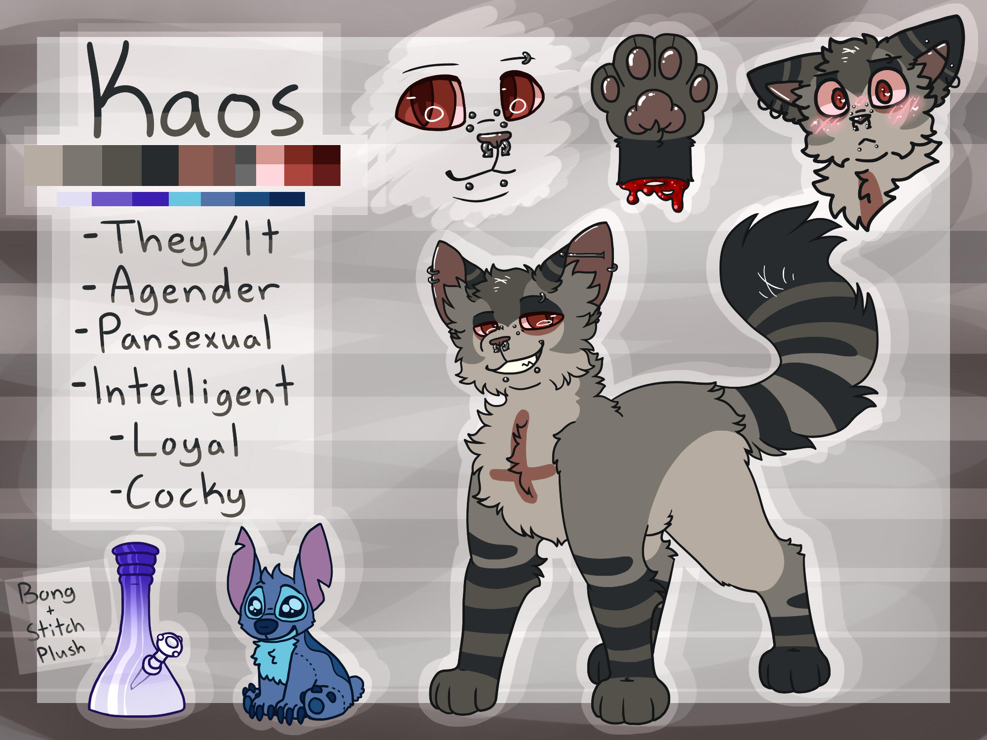 This would be similar to the one above, but would have accessories drawn out like in the complex feral references, along with a drawing of the eyes and a chibi headshot. (And of course a background)